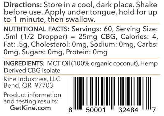 Unflavored CBG/CBD Isolate Tincture - 1:1 Ratio (1500mg/3000mg)