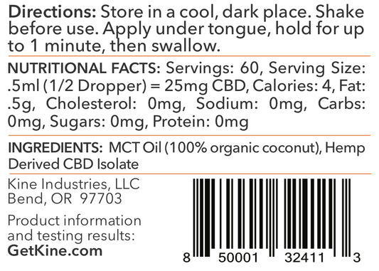 Kine CBD Tinctures are crafted with simplicity and efficacy in mind. They are made from pure CBD isolate and organic MCT oil, ensuring a high-quality, THC-free product. Our tinctures are also vegan and gluten-free, and they come in child-resistant bottles to ensure safety and accessibility.
